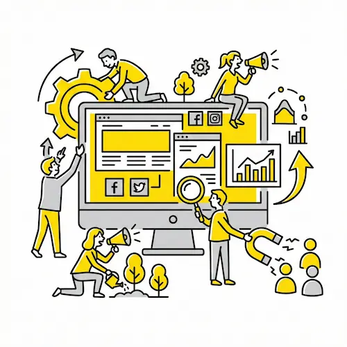 ウェブメディアの企画、運営、改善を通じて、継続的な情報発信と集客基盤づくりを支援します。目的や運用状況に応じて、無理のない運営体制の構築をサポートします。